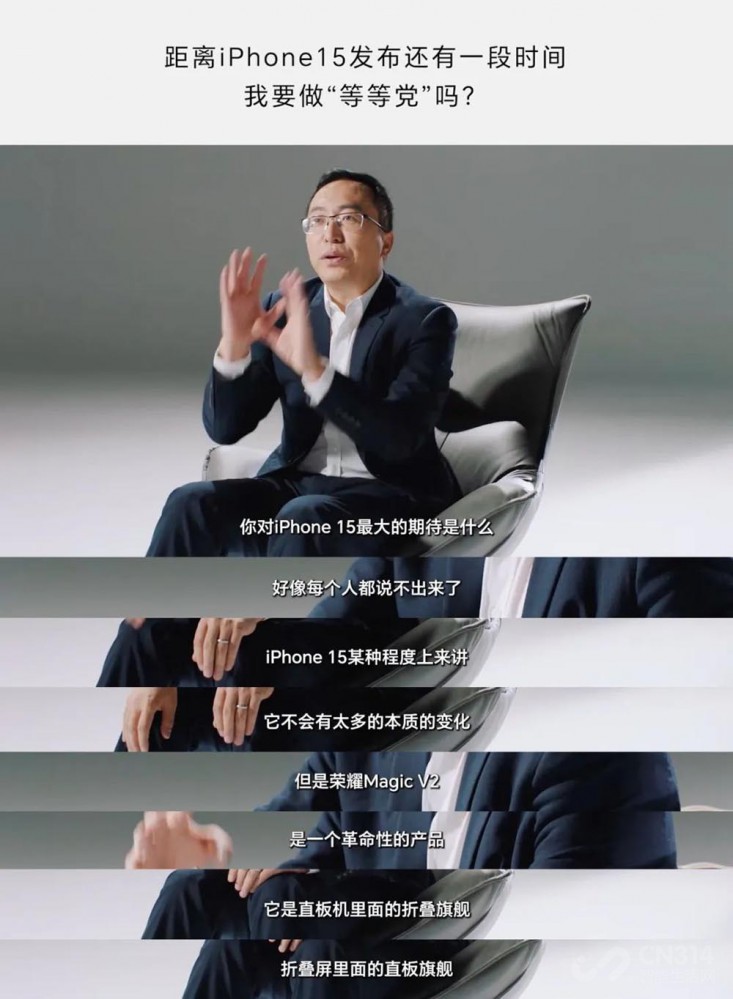 【CN314智能生活】近段时间,各家子品牌开启中端市场大乱斗之余,折叠屏手机市场也变得热闹起来。其中荣耀先宣布旗下的Magic V2于7月12日发布,之后便狂怼苹果,称荣耀Magic V2才是一款革命性的产品,而且会超过华为Mate X2,在近期博得了极高的关注度。