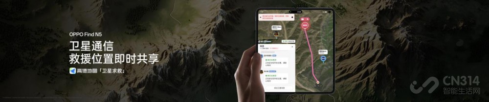 OPPO Find N5 带来更强大的通信能力,不仅支持备受好评的山海通信技术,还首发山海通信增强芯片,大幅提升卫星通信稳定性,确保用户在信号复杂的环境下也能保持稳定连接。OPPO 更与高德地图深度合作,实现卫星实时同步救援信息,为用户出行安全保驾护航。