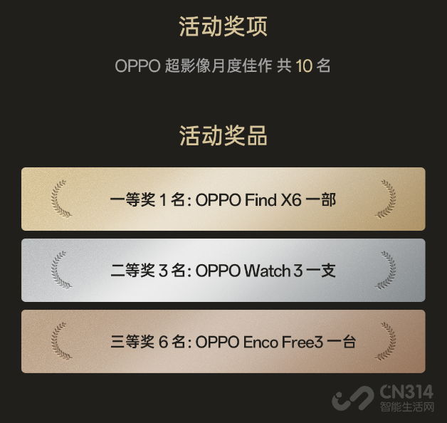 本次征集活动投稿时间为2023年4月21日-2023年5月13日,将单独评选OPPO超影像月度佳作共10名。投稿作品须紧扣山河奇境主题,创作题材包括但不限于旅行美景、自然奇观、历史古迹或地标建筑等;同时,投稿作品将默认归属于OPPO 2023超影像大赛“奇境”赛道,参赛者均有机会获得大赛奖项,更可挑战大奖16万元超影像奖励金。