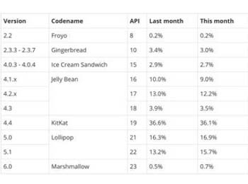 安卓各版本市场占比中 Android 5.X占第一经历了16个月时间后,Android 5.X市场份额终于第一。 现在,谷歌更新的数据显示,Android各版本市场占比中,5.0+5.1市场份额已经达到36.1%,而目前位列第二的是... -